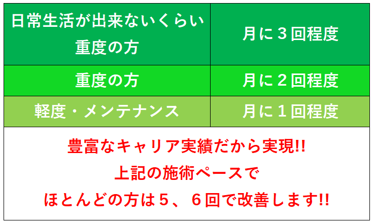 高額な治療費をかけないで !! 当院なら患者様のご負担・治療費・治療回数を軽減し、改善いたします !!